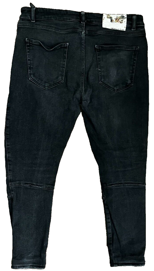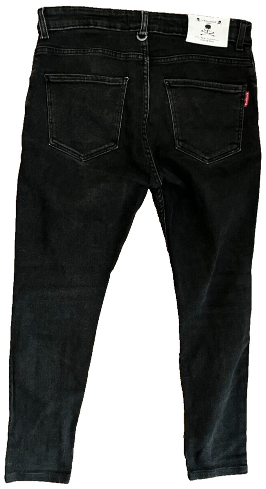 Rare Mastermind Japan Black Jeans Men 40x32 Skinny Fit Distressed Denim
