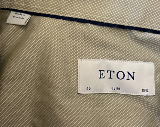 Eton Shirt Slim Button Down Twill Strip Light Green Cotton Size Men 40 15 3/4