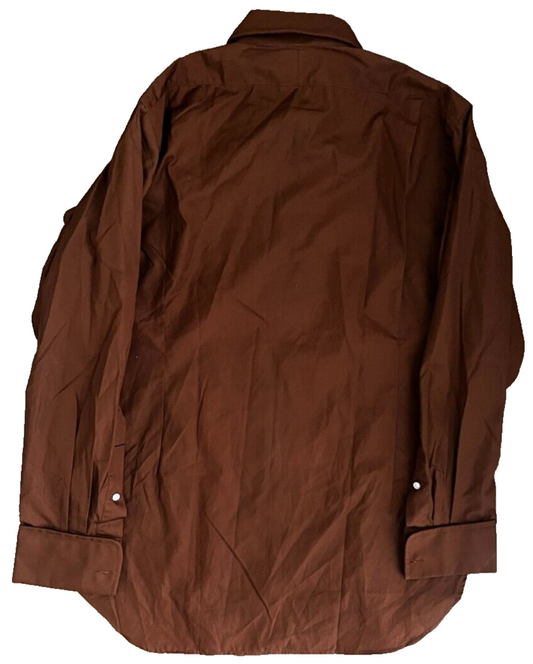 Christian Dior Button Up Long Sleeve Shirt Brown Solid Cotton Men Size 16.5 - 34