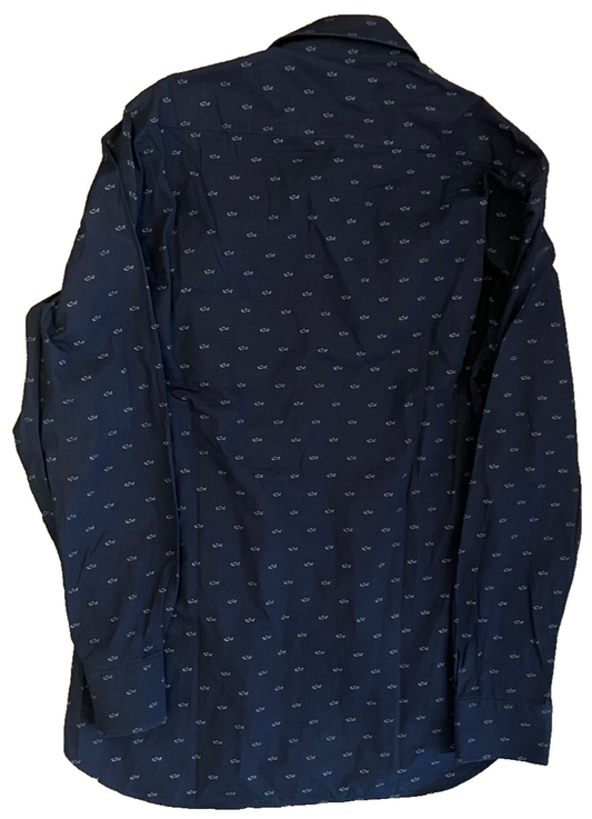 Paul Shark Yachting Shirt Long Sleeve Blue Cotton All Over Print Men Size 40