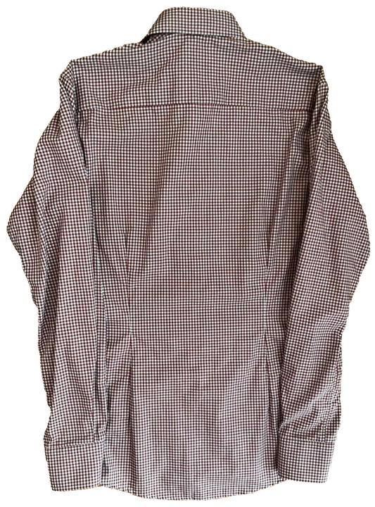 Eton Slim Fit Button Up Shirt Check Spread Cotton Men Size 38 15 Red Blue