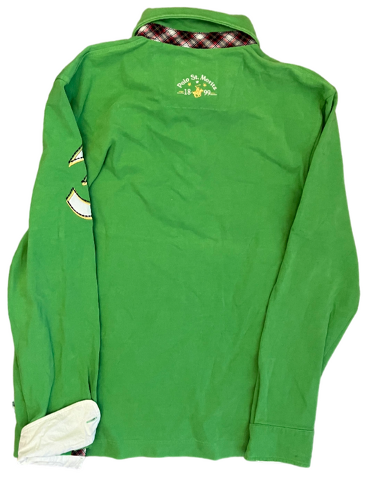 Polo St Moritz Shirt Green Patch Long Sleeve Cotton Size Men M