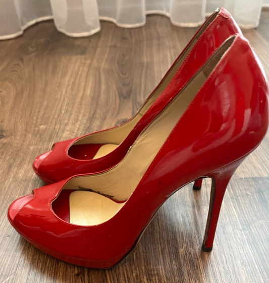 Jimmy Choo High Heels Red Patent Leather Luna Made in Italy Size EUR 38.5