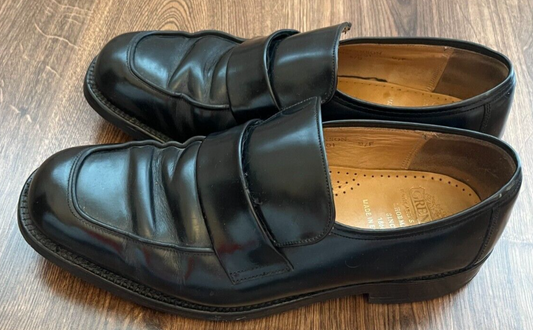 Grenson Leather Mens Shoes Loafers Slip On UK 9 F Moccasin Black